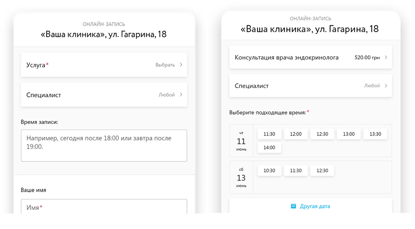Также форму можно интегрировать с МИС клиники или медцентра, и тогда пациент сразу может записаться на свободное время. Такая форма не только увеличивает количество записей, но и разгружает колл-центр.