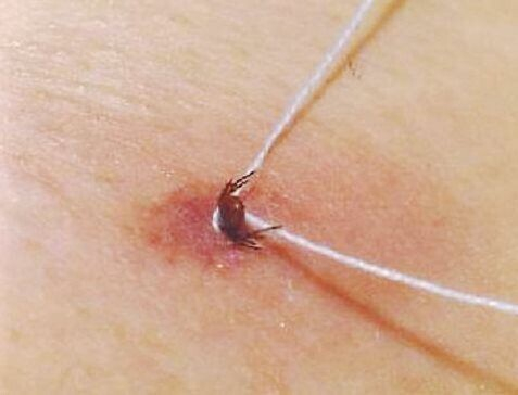 Этот способ является довольно надёжным, особенно если клещ ещё не успел как следует запустить свои цепкие лапки в кожу. Если же это случилось, сначала нужно аккуратно отделить вредителя от тела с помощью пинцета, а потому уже ухватить его петлёй. Скорее всего без помощников здесь не обойтись.